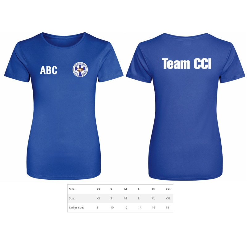Christ Church Infants Staff Polyester T Shirts Ladies Royal Blue Inc Team CCI & Initials (Royal Blue)