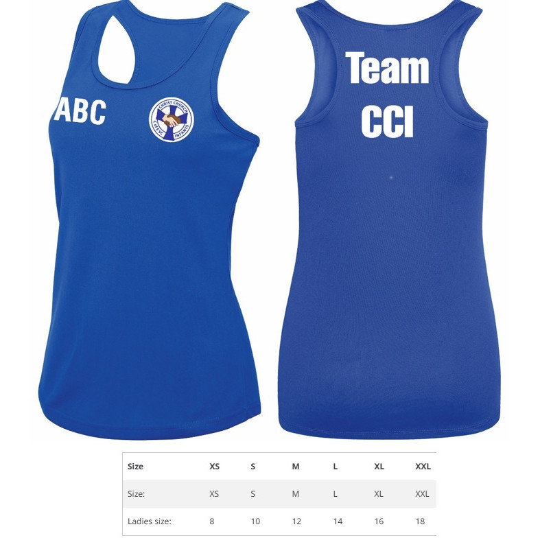 Christ Church Infants Staff Polyester Ladies Vest Royal Blue Inc Team CCI & Initials (Royal Blue)